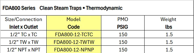 Clean Steam Traps — Thermodynamic FDA800 Series