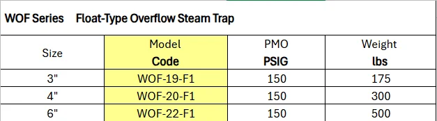 Float-Type Overflow Steam Trap — WOF Series