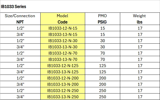 - Without Strainer: IB1031 / IB1032 / IB1033 / IB1034