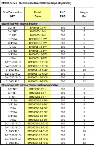 The BM300 is a medium-capacity thermostatic bimetal steam trap ideal as a drip trap on superheated steam mains, steam supply lines, saturated steam lines, and steam tracing applications. Bimetal traps sub-cool condensate before opening, making them extremely energy efficient and highly resistant to steam loss.