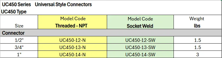 Universal Style Connectors UC450 Series — UC450 Type (No Strainer)